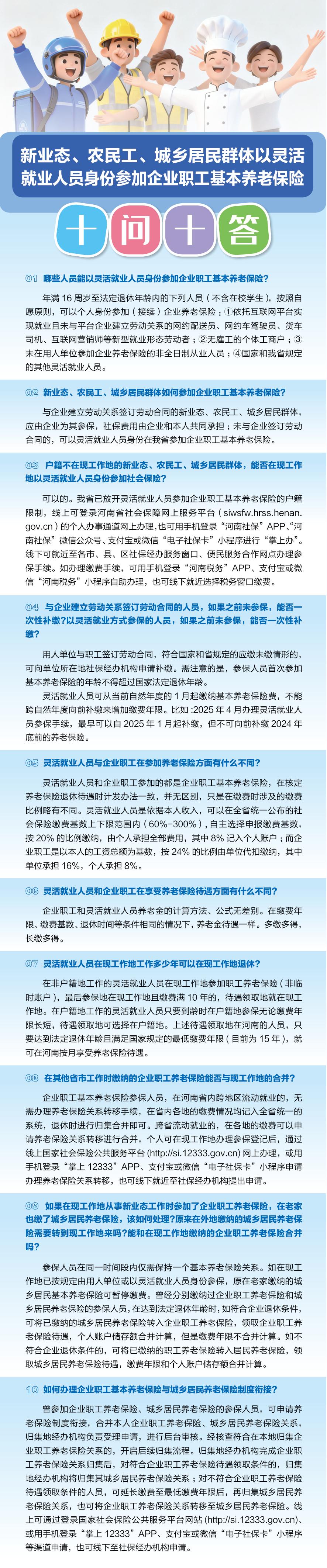 新业态、农民工、城乡居民群体以灵活就业人员身份参加企业职工基本养老保险“十问十答”