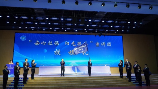 启动仪式上,“安心社保 阳光服务”宣讲团授旗仪式成为焦点。在《红旗颂》的旋律中,宣讲团团长接过象征使命的团旗,12名成员整齐列队、精神昂扬、集体宣誓,郑重承诺践行“初心、暖心、贴心、真心、匠心”的五心服务。在2025年“社保服务进万家”活动中,宣讲团将深入企业、社区、乡村一线,推动社保政策“飞入寻常百姓家”。